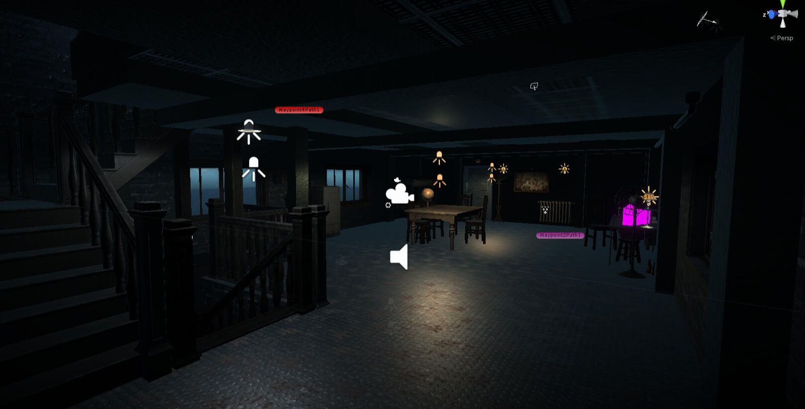 I used the basement for high-value interactions (like the lever / vents / locker) and designed it as a short, direct route from the stairs. This keeps it readable under pressure while still feeling like a deliberate choice to go down there.